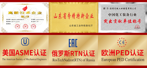 淄博太極在中國搪玻璃設備制造行業中首家通過ISO90001質量體系認證,并擁有美國ASME認證、歐洲PED認證以及國家部門頒發的搪玻璃制造許可證、進出口許可證和百余項榮譽證以及三十六項專利等。